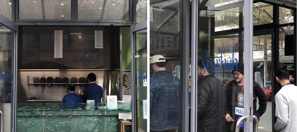IG: 2Fish1Chip It’s Fish & Chip Friday so I decided to pop into what is an institution in Thorndon, and grab a package from Starfish Fish & Chips to Go which opened when I started at NBNZ. Nestled in a prime spot at the Molesworth St entrance to New World. Order: Fish & Chips, Paua Fritter Cost: $23.20 The battered fish was Deep Blue Sea Cod. This puppy starts you off with a great crunchy batter that was music to the ears and definitive to the bite. The fillet itself was super soft to the bite and light on the tongue. I did question a small part of the fillet as it felt like it had more moisture than it should. The chips were your standard frozen bag bad boys but they were cooked well to get a green light. Portion was borderline for $5 but good enough. The Paua Fritter was a good’n with a great batter and good content. Finely minced flesh and onion, the two indistinguishable but all the same good flavour. Pricing isn’t that bad considering location. 25 years since opening, it’s still a solid joint dishing up your staple deep fried goods. Suuuussssh!