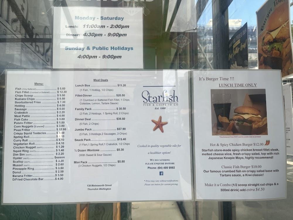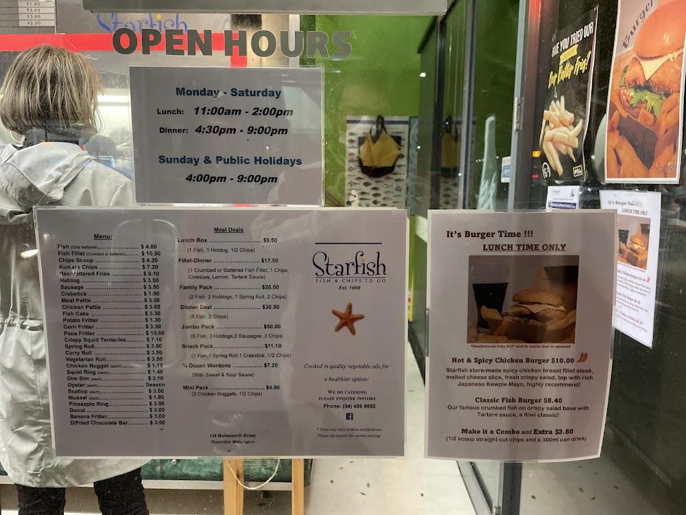 Starfish Fish & Chips To Go is nestled in the heart of Thorndon, a charming suburb of Wellington known for its historic landmarks and vibrant community. With easy access from the busy Molesworth Street, it stands out as a reliable destination for both locals and visitors craving a taste of New Zealand’s classic fish and chips. The location offers wheelchair-accessible amenities, ensuring a warm welcome for everyone. With years of service under its belt, this eatery has become an institution in the area, attracting customers who appreciate hearty, freshly prepared meals. The laid-back vibe makes it an ideal spot for a casual lunch or dinner, while the fully stocked menu provides something for everyone, including kids. Don't miss the chance to explore the nearby New World supermarket, which adds convenience for those looking to pick up groceries or snag a bite before heading home. The fusion of community and culinary tradition at Starfish creates a memorable dining experience.